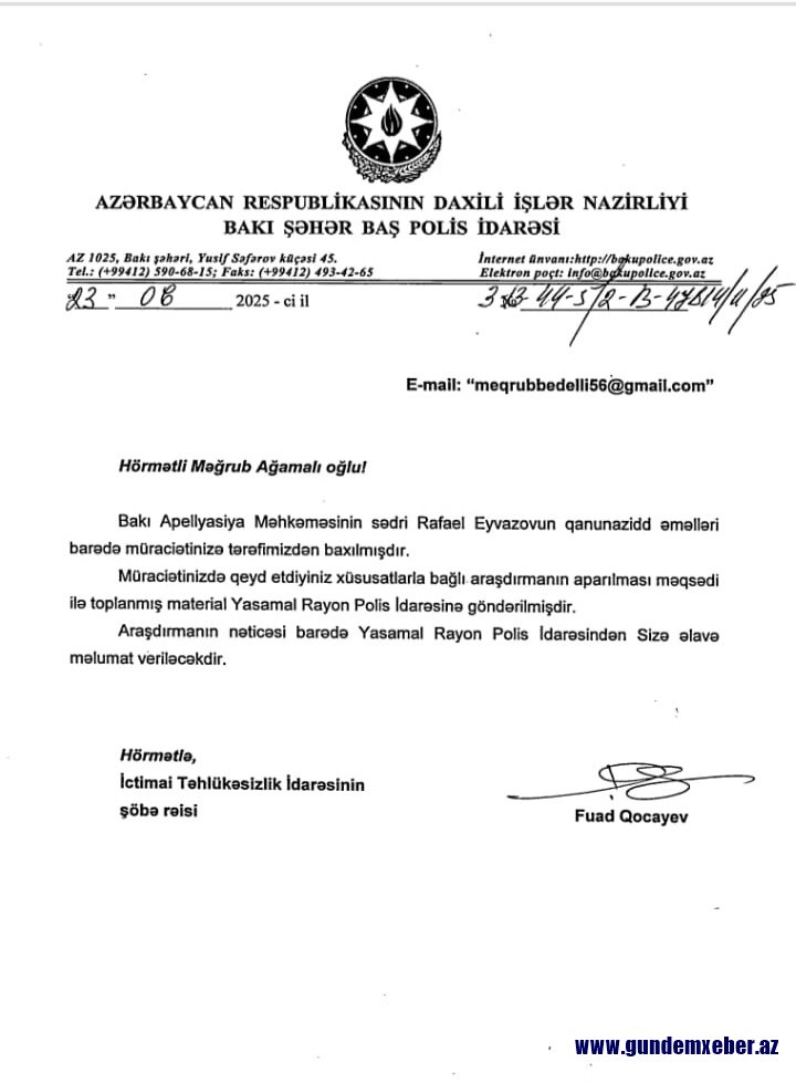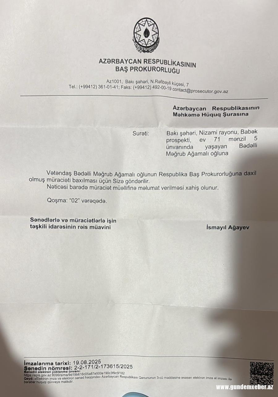 Halbuki hakimlər haqqında intizam icraatının başlanılmasına səbəblər sırasında fiziki və hüquqi şəxslərin şikayətləri və mediada dərc olunmuş məlumatlar öndə gedir. MHŞ-nın hərəkətsizliyinə baxın, DİN, Bakı şəhər Baş Polis İdarəsi Bakı Apellyasiya Məhkəməsinin Mülki Kollegiyasının sədri Rafael Eyvazovun qanunazidd hərəkətlərindən şikayəti araşdırmağı Yasamal RPİ-yə tapşırıb, baş prokurorluq ali dövlət hakimiyyəti orqanları kimi MHŞ-yə müraciət edib, amma MHŞ vəzifəsini icra etmir. Ona görə də Bakı AM-in yataqda 1-ci dərəcəli Qarabağ əlilini məhkəməyə müraciətinə görə 400 manat (Xumar Mərdanova, Vahid Sadıqov, Sabit Bəhrəmzadə), kassasiya şikayəti vermək üçün vəkillə təminatına ərizə verdiyinə görə 100 manat (Fuad Abdıyev, Cəmilə Musayeva, Fuad Babayev) “VİCDAN CƏRİMƏLƏRİ” sürür. Biz hələ sədri İlham Kərimli ( Bakı Apellyasiya Məhkəməsinin keçmiş hakimi) olan Nizami məhkəməsinin kommersant hakimi Qumru Əliyevanın (VÖEN 1400028632) hakimə etiraza görə 300 manatlıq “cərimə bazarlığı”nı demirik. Özü də toplam 800 manatlıq cərimə özbaşınalığı, vicdansız davranış faktı anında icra sənədi verməklə gecə ilə icraata yönəldilib. QARABAĞ QAZİSİNİN XEYRİNƏ ÇIXARILAN 10 (!) MƏHKƏMƏ QƏRARININ İCRASI İSƏ NƏİNKİ TƏMİN OLUNUR, HEÇ 17 İLDİR İCRAYA BELƏ YÖNƏLDİLMİR; HEÇ TƏLƏBKAR QARABAĞ QAZİSİNİN ƏRİZƏLƏRİ QƏBUL BELƏ EDİLMİR, ƏRİZƏLƏR MÜMKÜNSÜZ, YOLVERİLMƏZ SAYILIR!(?) Bu da hamının qanun və məhkəmə qarşısında bərabərliyi, ədalətli məhkəmə araşdırması hüquq və azadlığı!