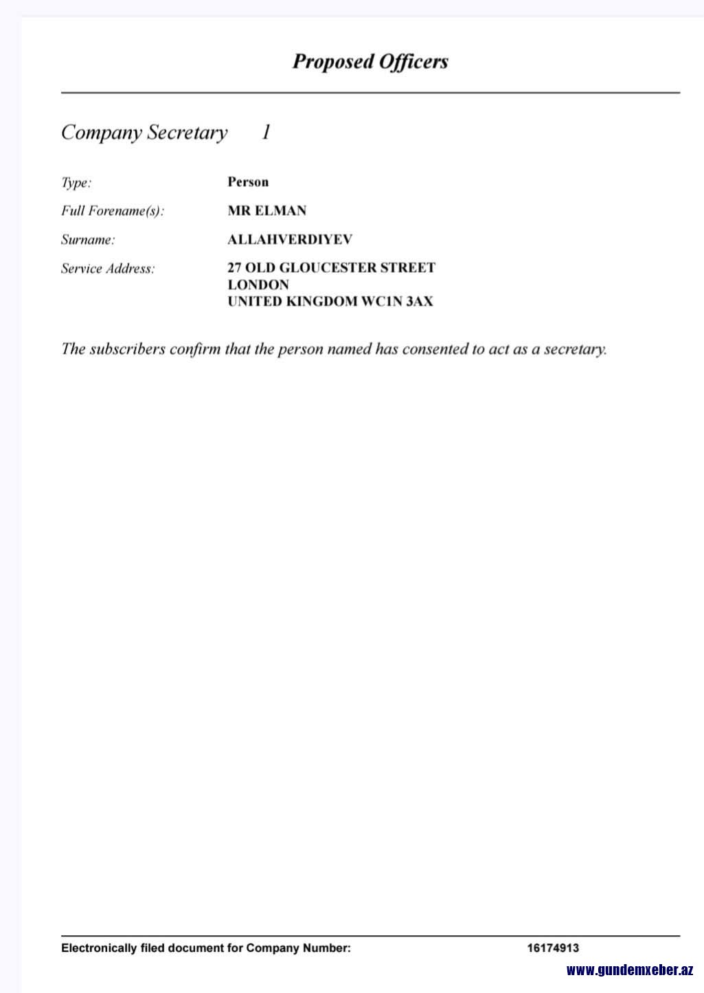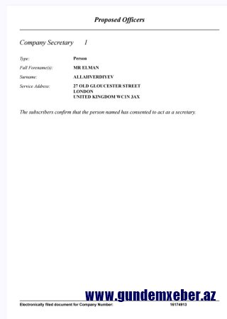 GundemXeber.Az-ın sosial şəbəkələr üzərindən əldə etdiyi məlumata görə Baş nazirin keçmiş müavini, "Qaçqınkom"un sabiq sədri, hazırda isə Məcburi Köçkünlərin Sosial İnkişaf Fondunun müşahidə şurasının sədri Əli Həsənovun kürəkəni, Almaniyanın Hamburg şəhərində yaşayan Elman Allahverdiyev İngiltərədə özünə yaxta şirkəti açdığı bildirilir.